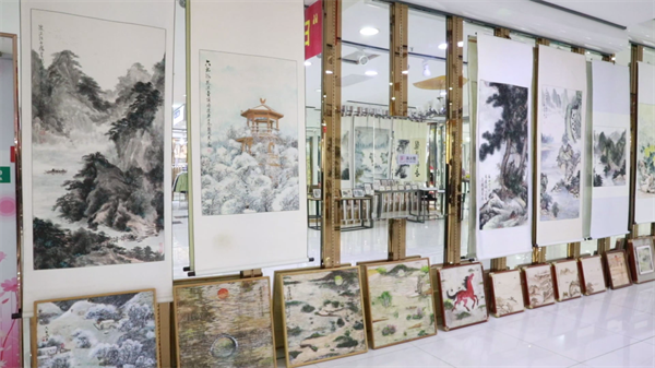 国画展区笔墨飘香,山水、花鸟题材作品遵循传统笔墨法度,尽显中华文脉的精神气韵。丙烯画展区则呈现跨界创新活力,吸纳了西方绘画光影技巧,融入传统美学符号,国画笔墨意境与丙烯颜料的色彩张力相结合,打破非遗艺术的传统表达边界,为传承注入现代活力。