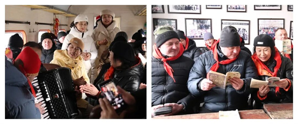 赛事落幕,文旅续章,消费热度持续升温。登上百年蒸汽小火车,俄罗斯冰球队队员与县老干部协会队员们同唱苏联经典歌曲《喀秋莎》,共赏沿途冬日盛景。列车沿着13.14公里“一生一世”森铁路线缓缓前行,队员们纷纷举起相机定格美好瞬间,沉浸式体验这场穿越时光的文旅之旅,感受桦南林区工业遗产的独特魅力。作为桦南文旅标志性IP,蒸汽小火车与森工大院借此次国际赛事再度出圈,吸引更多游客慕名而来,推动工业遗产旅游与冰雪旅游深度融合,为文旅消费注入持久动力。