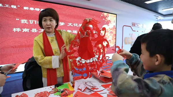 千门万户曈曈日,总把新桃换旧符。为弘扬中华优秀传统文化,营造欢乐祥和的节日氛围,2月3日上午,县新时代文明实践中心联合县文联、县总工会开展我们的中国梦·文化进万家暨“我在新时代文明实践中心过新年”活动,活动吸引了众多志愿者、亲子家庭参与,大家写春联、剪窗花、包饺子,在亲身实践中感受浓浓年味,共迎新春。