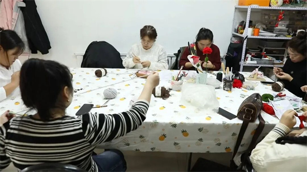 创意手工坊学员徐思琪:以前在家就是带孩子和做家务,没什么收入。现在在这学编织玩偶,每个月能挣1000到2000块钱,不耽误照顾家务,还能挣一些零花钱,就觉得现在日子过得越来越有奔头了。