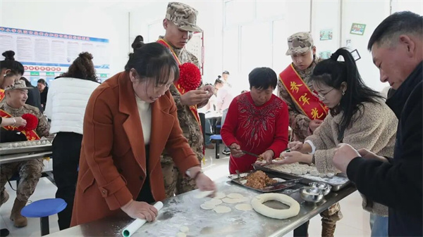 在县第四小学,新兵与家属们围坐一堂,一个个饱满的饺子在欢声笑语中成形,热气腾腾的出锅瞬间,将家的温暖与离别的不舍紧紧交织。家属一边叮嘱“到了部队要好好训练、听党指挥”,一边帮儿子整理戎装,眼中满是骄傲与牵挂,饺子的温热,暖了行囊,也坚定了他们保家卫国的初心。