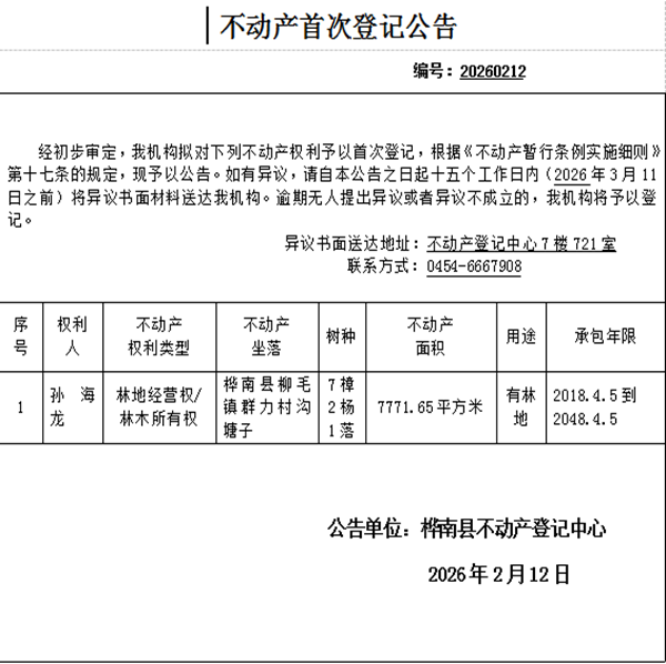 不动产首次登记公告(孙海龙)