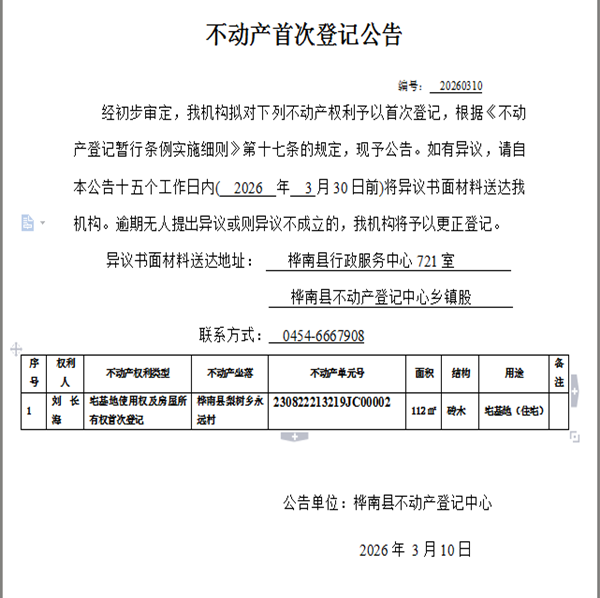 不动产首次登记公告(刘长海)
