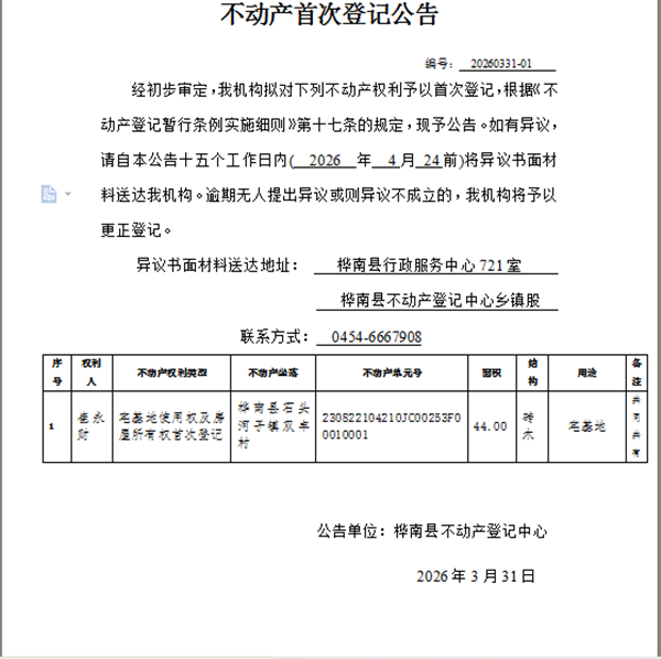 不动产首次登记公告(崔永财)