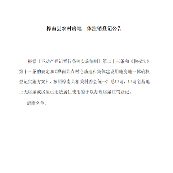 宅基地统一注销公告(驼腰子镇)