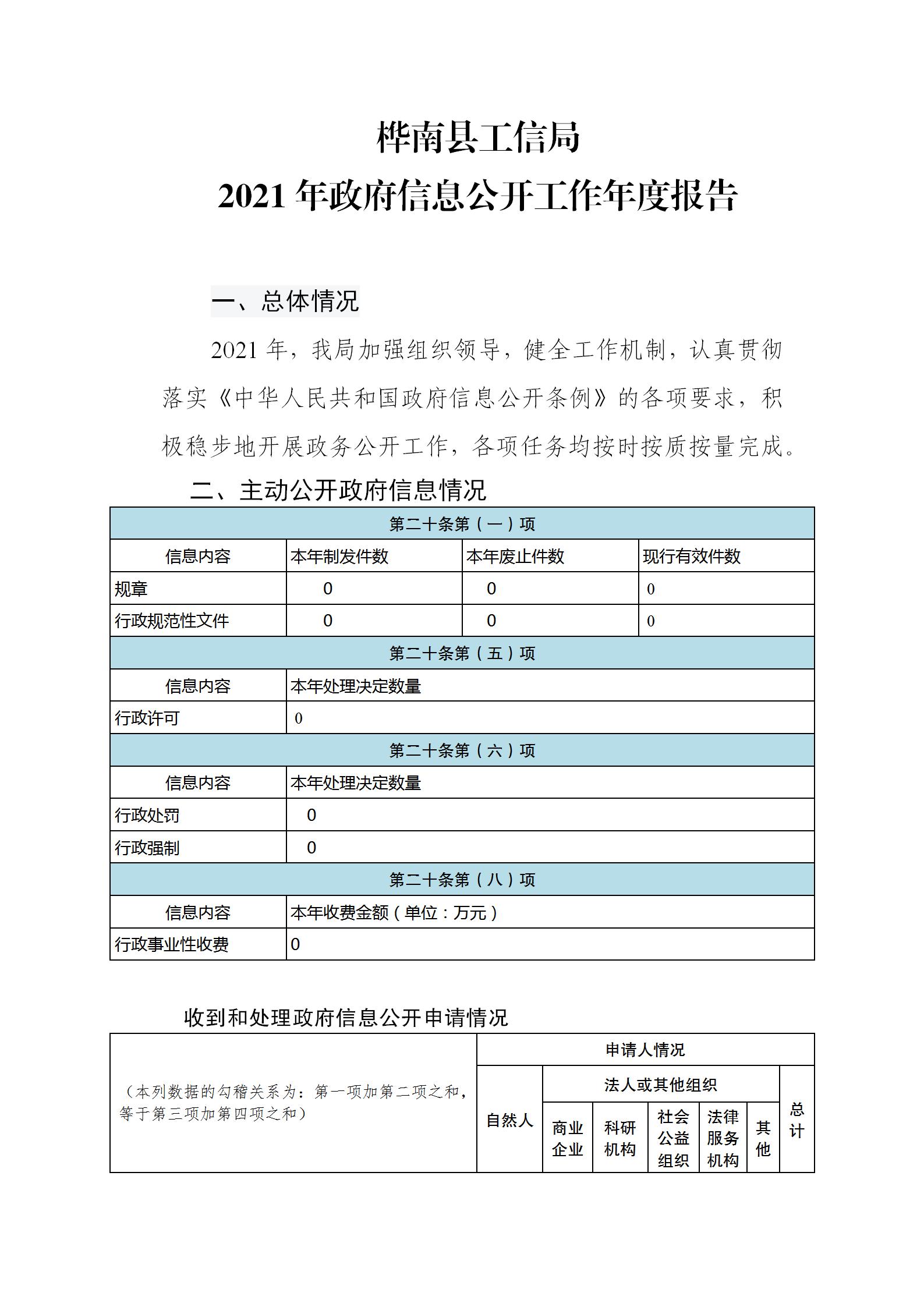 桦南县工信局2021年政府信息公开工作年度报告