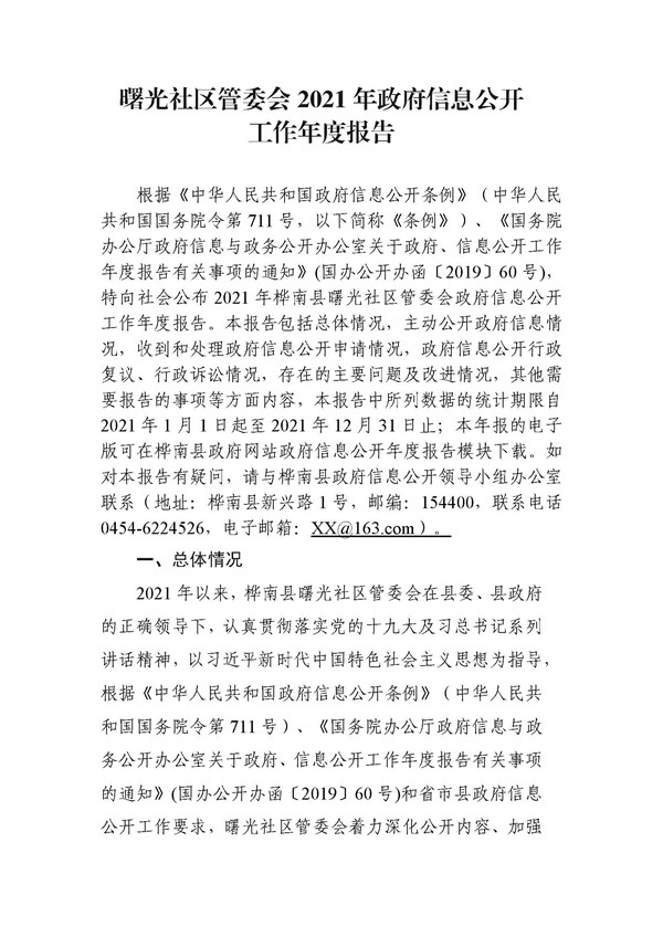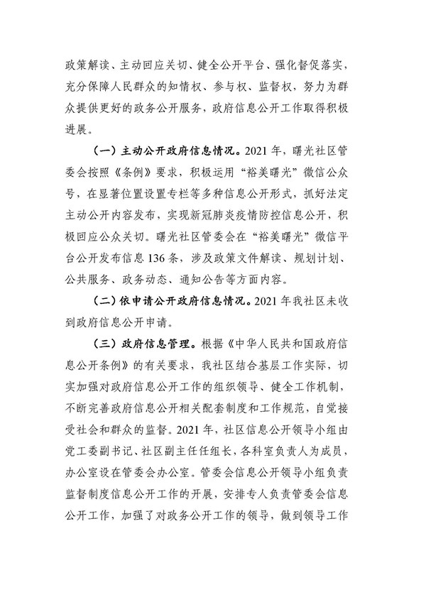 曙光社区管委会2021年政府信息公开工作年度报告