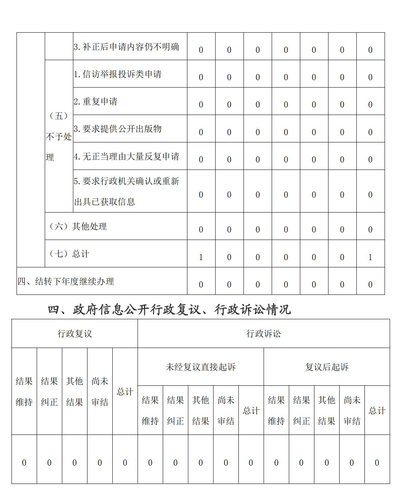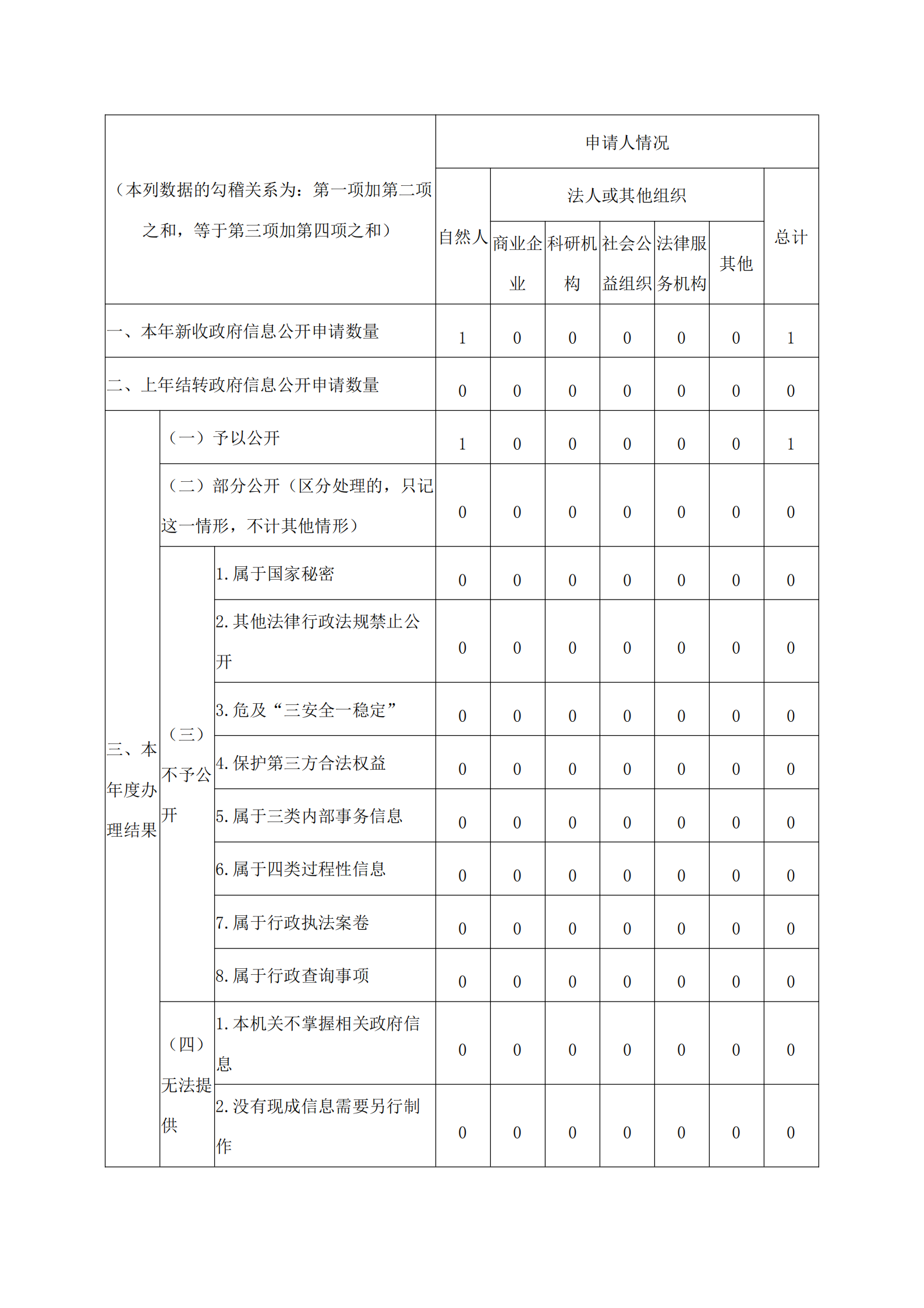 三、收到和处理政府信息公开申请情况
