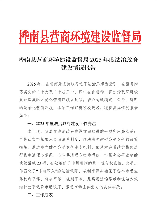桦南县营商环境建设监督局2025年度法治政府建设情况报告