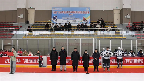 冰雪为媒,竞技传情,更催热消费。2月1日,“冰超”2026年佳木斯市中俄城市冰球友谊邀请赛(桦南站)开幕式在桦南县全民健身中心举行。
