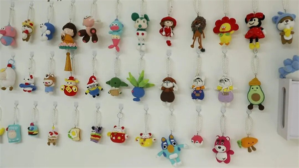 为了让手工玩偶紧跟市场潮流,崔明的指尖从未停止创新。她深入调研文创市场,结合国潮风、卡通IP、乡土文化元素,设计出多系列原创玩偶,并自学电商运营、直播带货、短视频制作,第一条“3分钟学会编织小熊挂件”的短视频,一周内就收获500多粉丝,打通了产品的销售链路。县妇联、文旅部门为手工坊对接文旅市集、电商助农平台,越来越多的订单从全国各地飞来,让乡土指尖技艺走向市场。