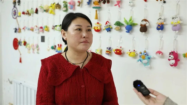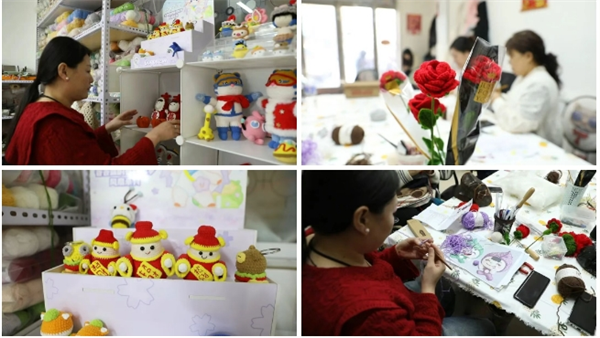 创意手工坊学员徐思琪:以前在家就是带孩子和做家务,没什么收入。现在在这学编织玩偶,每个月能挣1000到2000块钱,不耽误照顾家务,还能挣一些零花钱,就觉得现在日子过得越来越有奔头了。