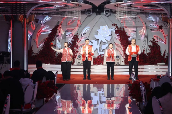 随后,卫健系统各单位精心准备的文艺节目依次上演。中医医院的合唱《我爱你中国》,抒发了深沉的家国情怀与行业担当;妇幼保健院的快板《夸夸咱的好医院》,讲述了日常工作中的奉献与成就,彰显了务实进取的职业精神;人民医院的三句半《赤马迎春乐开怀》,展现了医务工作者的乐观与活力;疾控中心的歌伴舞《上春山》,传递出春天的生机与对未来的向往;退休老干部献演的京剧《梨花颂》,体现了卫健文化的传承与积淀。节目中同时巧妙穿插了多个互动游戏环节,进一步点燃了全场热情,现场始终充盈着团结、欢快、热烈的节日氛围。