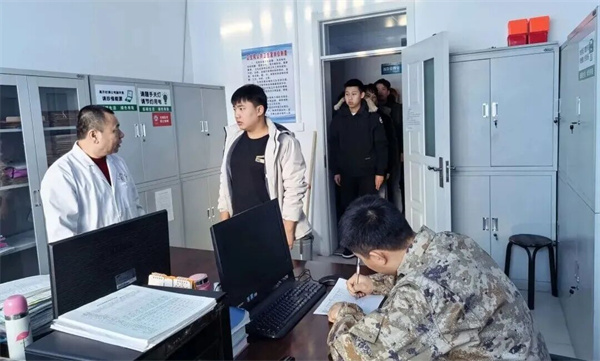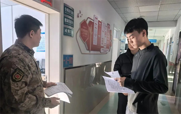 体检现场秩序井然,应征青年在工作人员引导下依次完成身高体重、视力、听力、血压、心肺功能等多项检查。医护人员秉持“标准从严、把关从细”的要求,针对关节活动度、皮肤状况、纹身瘢痕等易忽略环节仔细核查、逐项记录,确保检查全面、标准统一。对于应征青年的询问,医护人员也耐心解答、贴心指导,在规范严谨中传递温暖,保障初检工作顺利推进。