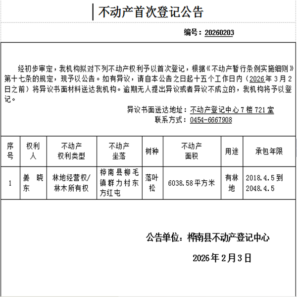不动产首次登记公告(姜晓东)