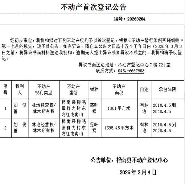 不动产首次登记公告(刘俊善)