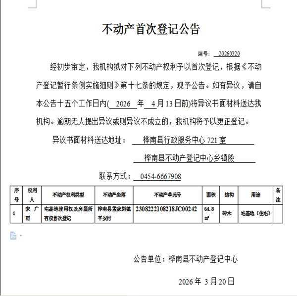 不动产首次登记公告(宋广雨)