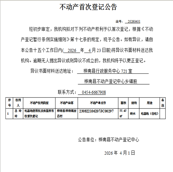 不动产首次登记公告(吕玲玲)
