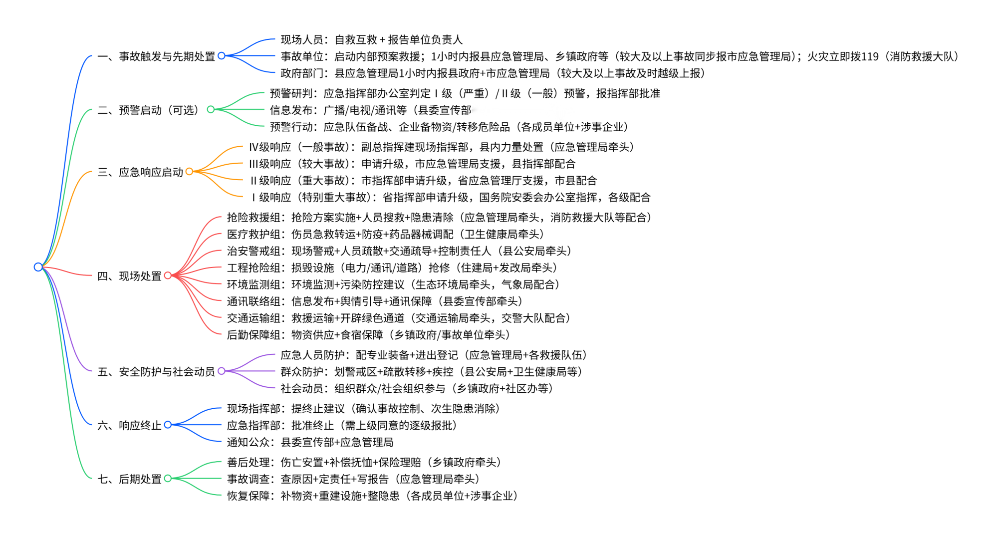(10)县公安局交警大队:负责维护事故发生区域交通秩序,保证事故救援交通畅通。
