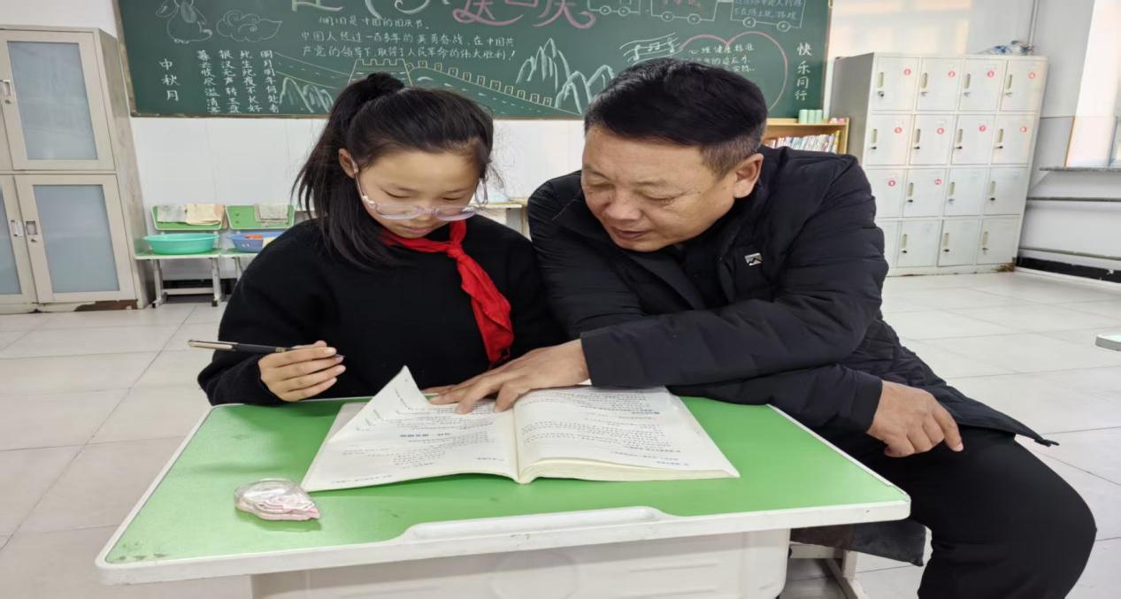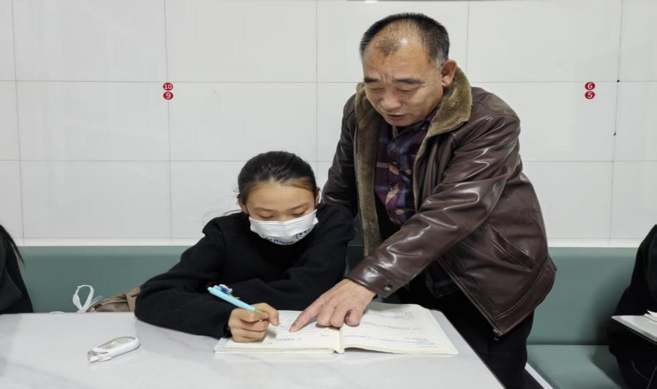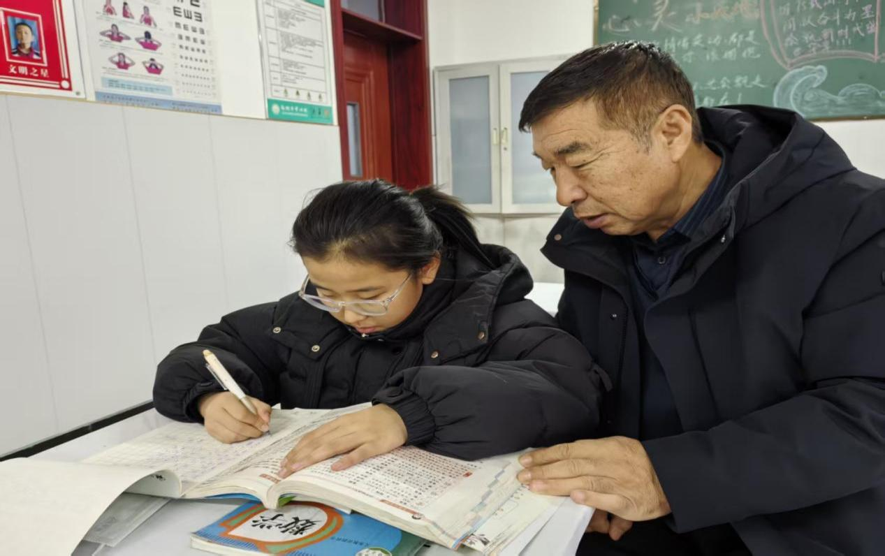 针对留守儿童缺乏陪伴、学习动力不足的问题,老教师们不仅关注学业提升,更注重心理疏导和思想引导,通过谈心交流、分享成长故事等方式,鼓励学生树立自信、勤奋好学。四年级学生小宇是一名留守儿童,数学成绩一直不理想,老教师卢永福每天利用课后时间为他梳理错题、讲解解题思路,还时常鼓励他“只要肯努力,就没有学不会的知识”。在卢老师的辅导下,小宇的数学成绩逐渐提升,学习主动性也明显增强。还有五年级同学晓丹语文作文较差,纪建清老教师坚持课间一对一辅导。刘成明老教师坚持时刻抓住课间时间,为六年级弘莹同学补习数学等等。