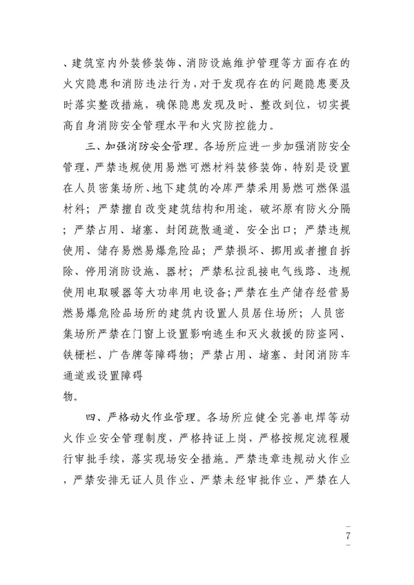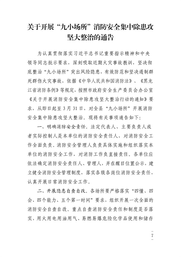 关于开展“九小场所”消防安全集中除患攻坚大整治的通告