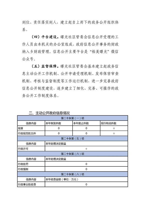曙光社区管委会2021年政府信息公开工作年度报告