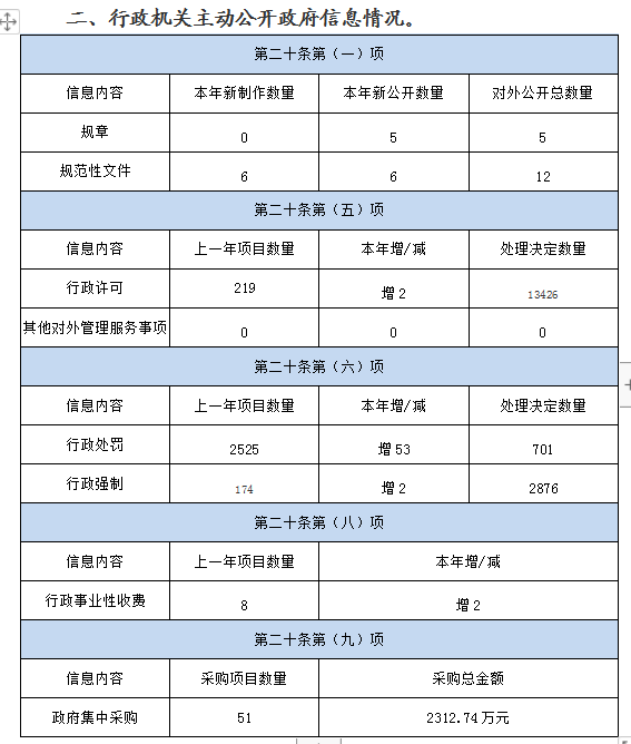 二、行政机关主动公开政府信息情况。